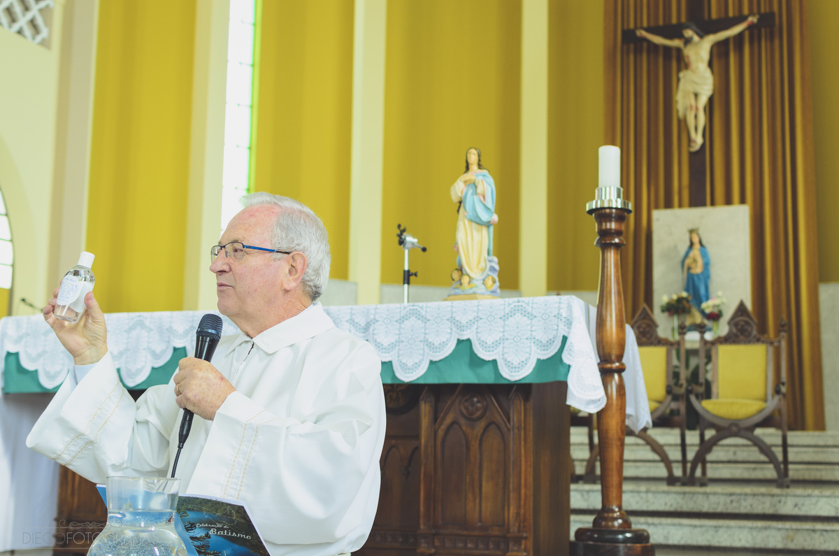 Fomos abençoados pois o padre ainda pegou no colo o Pedro Henrique para continuar a missa!